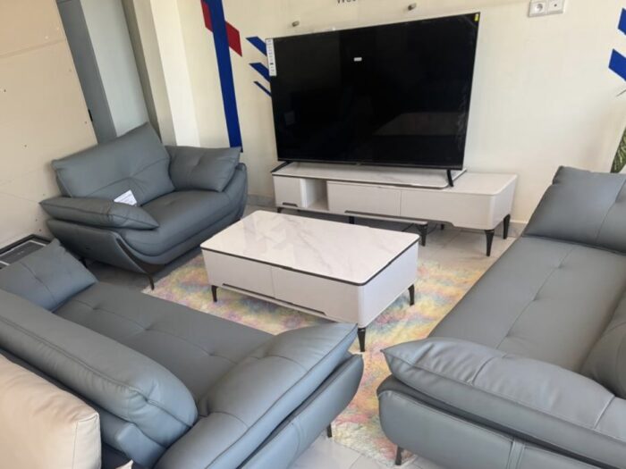 Salon Cuir Gris