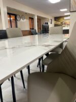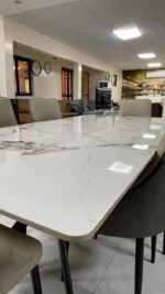 La table à manger ALBA TRADING est idéale pour optimiser l’espace et créer une ambiance chaleureuse dans votre salle à manger. Son design moderne allie élégance et fonctionnalité, s’intégrant facilement à tous les styles d’intérieur. Avec sa capacité de 6 places, elle offre un espace confortable pour partager des repas en famille ou entre amis. Conçue avec des matériaux durables, elle apporte une touche raffinée et contemporaine à votre espace de vie.